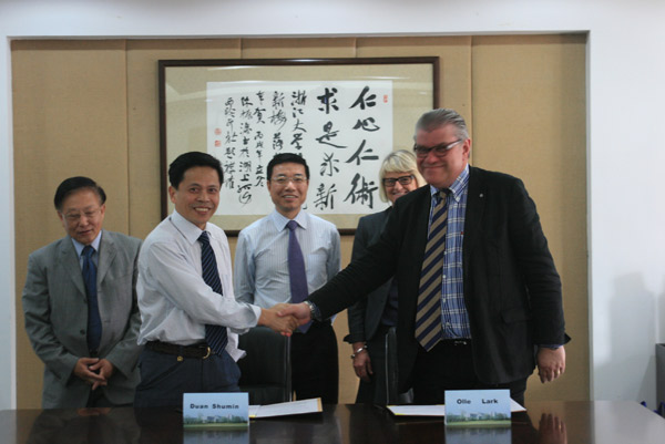 歌德堡大学是在欧洲享有很高声誉的综合性大学。去年3月,Olle Lark教授曾访问过医学部,并达成了合作意向。段树民教授向远道而来的客人表示欢迎,黄河教授简要介绍了浙江大学医学部的概况。Olle Lark教授也介绍了瑞典哥德堡大学的历史,教学,科研等发展的情况。双方就两校药学,口腔和护理等方面的情况进行了深入交流,特别对于学生交流项目都表现出极大的兴趣和进一步合作的意愿。最后,段树民教授和Olle Lark教授代表两校医学院签订了合作备忘录,为今后开展具体的交流合作奠定了坚实的基础。访问期间,代表团还参观了学部的解剖和病理教学实验中心,以及神经生物实验室。