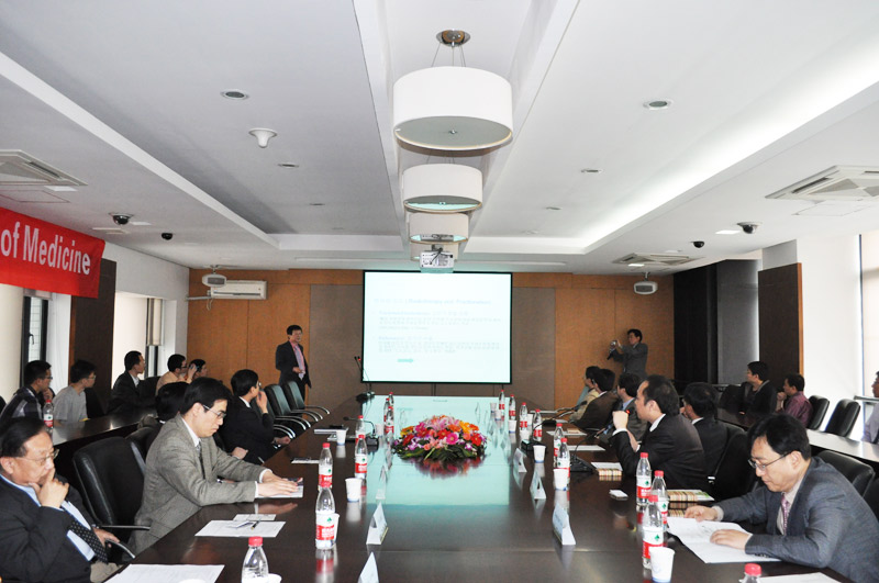 5月6日,韩国东亚大学医学院院长Sae-Heun Rho教授一行8人访问医学部,代表团成员包括肿瘤影像系教授Won Joo Hur、解剖与细胞生物系教授Young Hyun Yoo、心内科教授Moo Hyun Kim、泌尿科教授Gyung Tak Sung、骨科教授Lih Wang、全科教授Seong ho, Han以及行政主管Il Hwan, Park。医学部常务副主任罗建红、副主任陈智、许正平、黄河参加了接待。