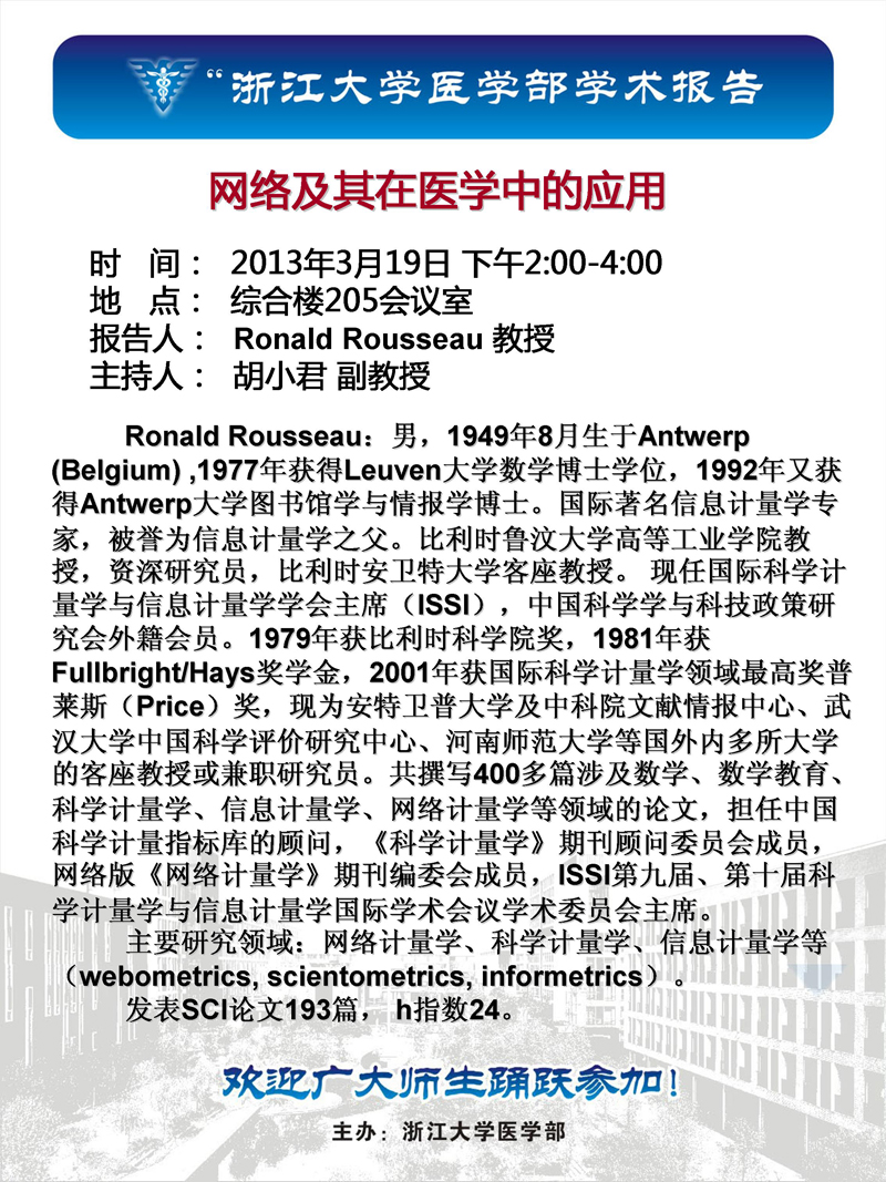 医学部学术报告第五十一场——Ronald Rousseau教授学术报告