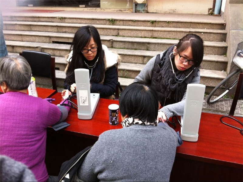 20141207日上午,七年临床1003班同学在西湖区桃园春居文华社区进行了健康咨询、血压测量、按摩等活动。  活动前几天,我们制定了详细的策划方案,社区负责人联系,分组,器材准备,按摩视频学习等。今早8:30,组员们已经纷纷小区居委会门口,简单视察环境后,组员们便开始动手布置场地,搬运桌椅。人员分为三组:一组负责为居民测量血压,一组负责为居民解答健康问题,第三组负责肩颈部按摩。同学们用自己的专业知识,耐心体贴地为文华社区居民的健康奉送绵薄之力,得到了长辈们的感谢和称许,虽然天气寒冷,大家心里是温暖欣慰的。直到中午近12点,我们结束了这一次的社区服务。  入社区的活动让大家在业余时间为居民的健康做点事,为社会做点贡献,也让我们学有所用,体现我们作为医学生的价值。这次活动进行地非常顺利,也希望通过我们的努力能让更多人学习到健康知识,享受到健康服务。
