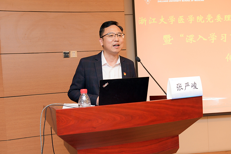 本次会议特邀省疾病预防控制中心微生物检验所党支部书记、所长张严峻同志作专题分享。作为党的二十大代表、全国优秀共产党员,张严峻同志结合自身工作实际和出席党的二十大的经历感受,围绕习近平总书记重要报告的精神实质和丰富内涵,向与会人员分享学习心得体会。