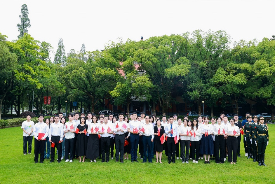 陈周闻在致辞中指出,隆重举行此次升旗仪式,既是为送别一届毕业学子,更是为鼓舞广大同学们接续砥砺前行。她对同学们提出三点期望:作为新时代的先锋和骨干力量,希望同学们厚植家国情怀,为实现民族复兴积极贡献;秉承科学家精神,于医疗卫生领域不懈深耕;牢记医者誓言,将守护人民生命健康铭记于心。以高远使命升华青春梦想,以医者仁心服务祖国人民,锻造向下扎根、向上登攀的过硬本领,以无悔青春报效家国,书写不负祖国、不负人民的时代答卷。